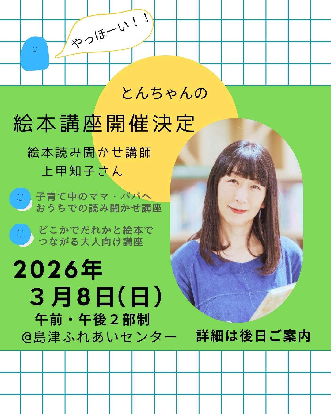 とんちゃんの絵本講座のお知らせも